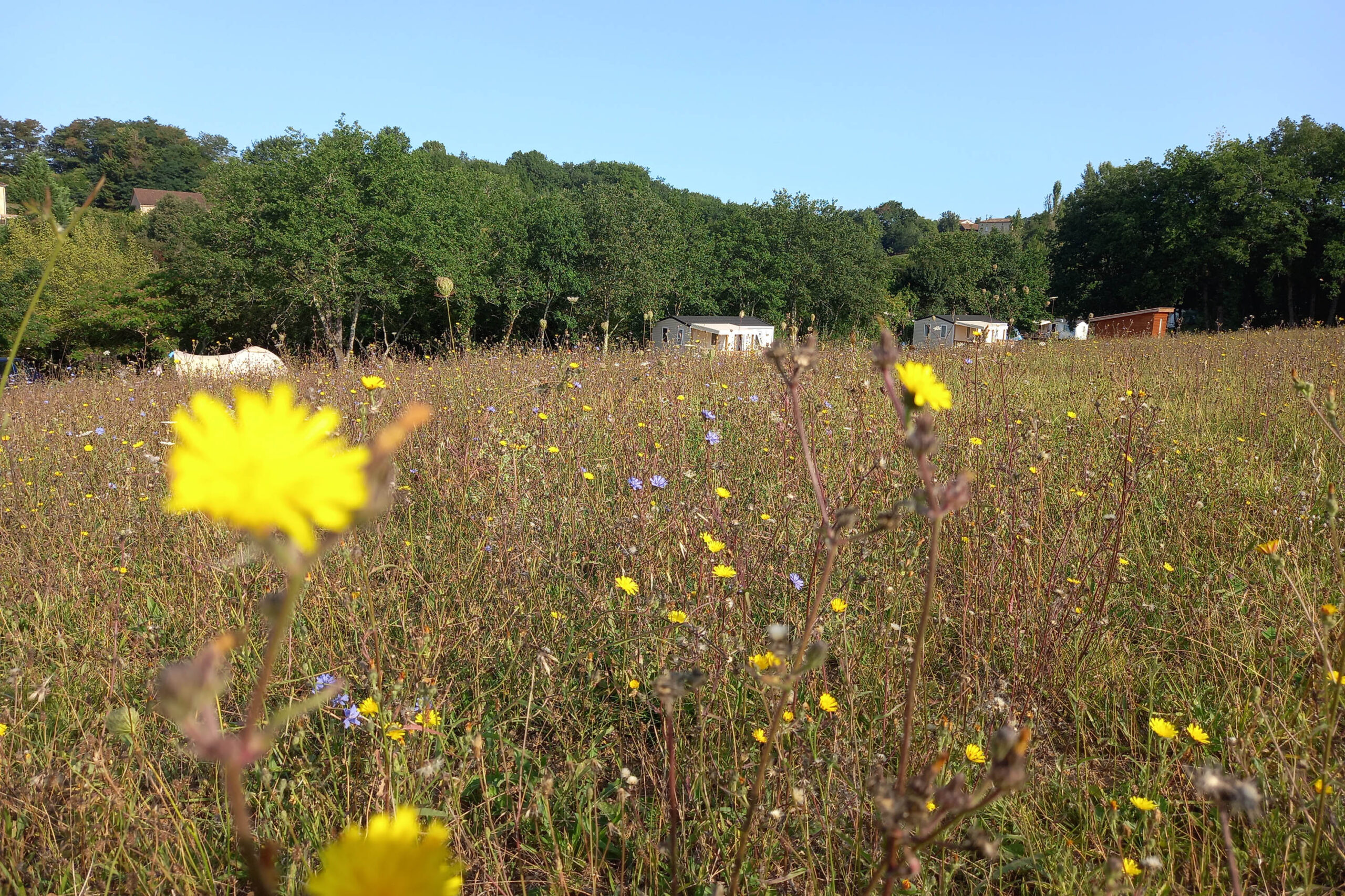Camping is zeer uitgestrekt en ligt een stuk hoger dan de omgeving. Deels is de camping bebost maar centraal is ook een zeer grote grasvlakte. De camping geeft een zeer open en ruim gevoel met een mooi panoramisch uitzicht over de vallei van de Lot en de wijngaarden.