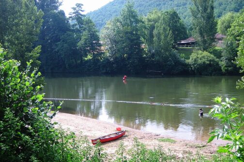 Wat gedateerde, schaduwrijke camping direct aan de Lot. Zwembad en winkeltje op de camping. Kano- en fietsmogelijkheden.